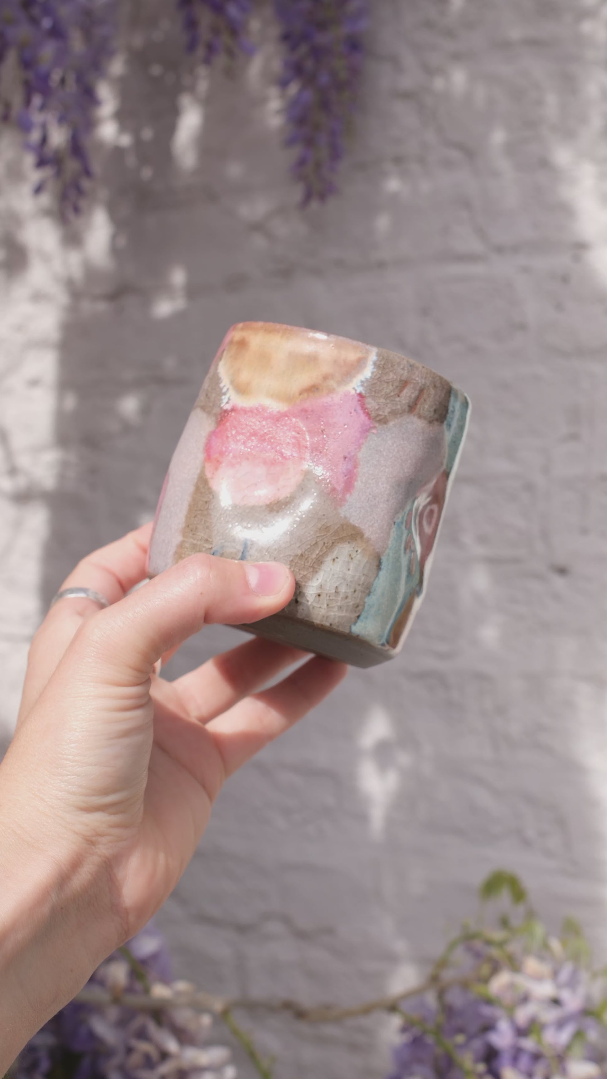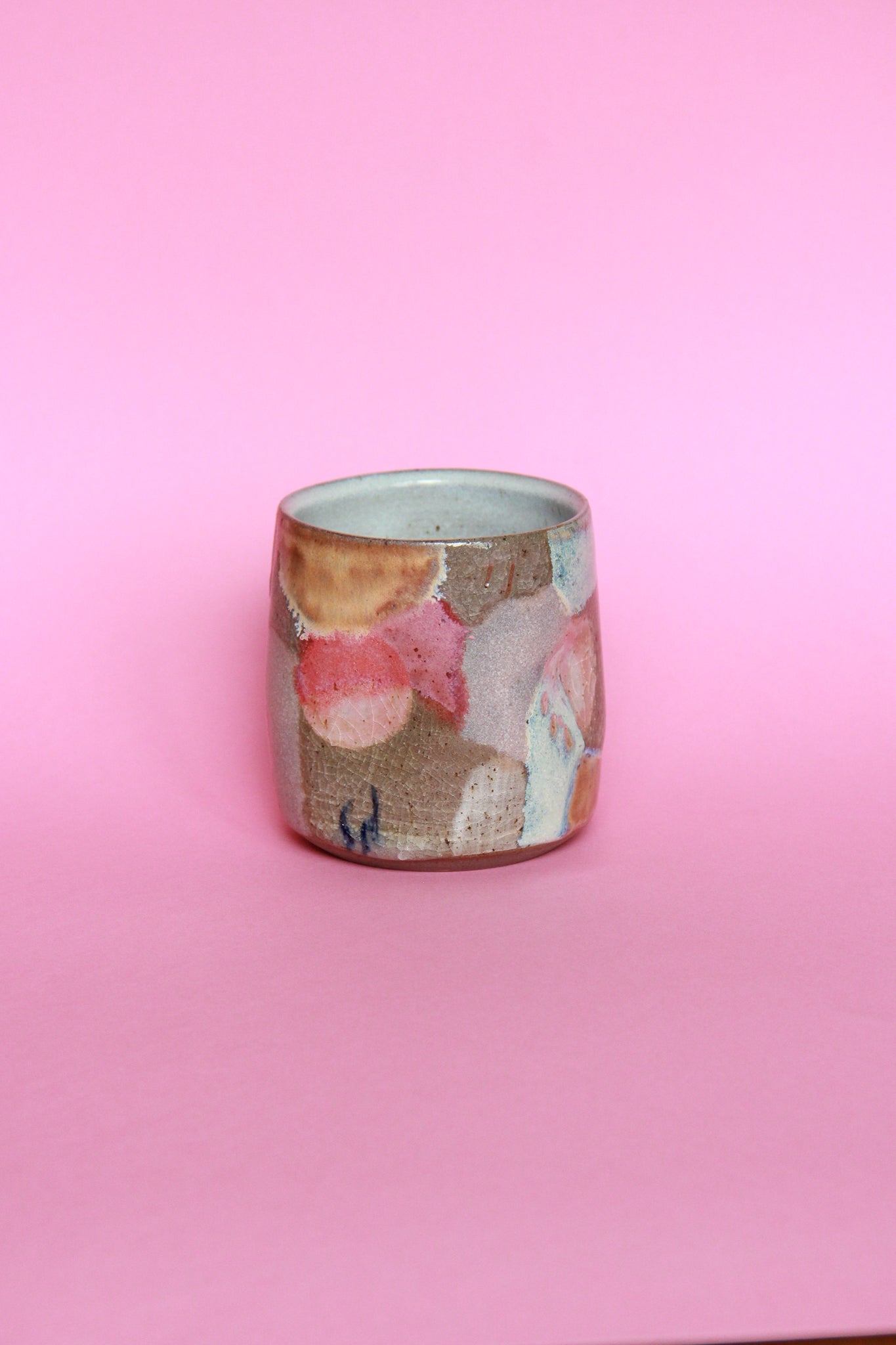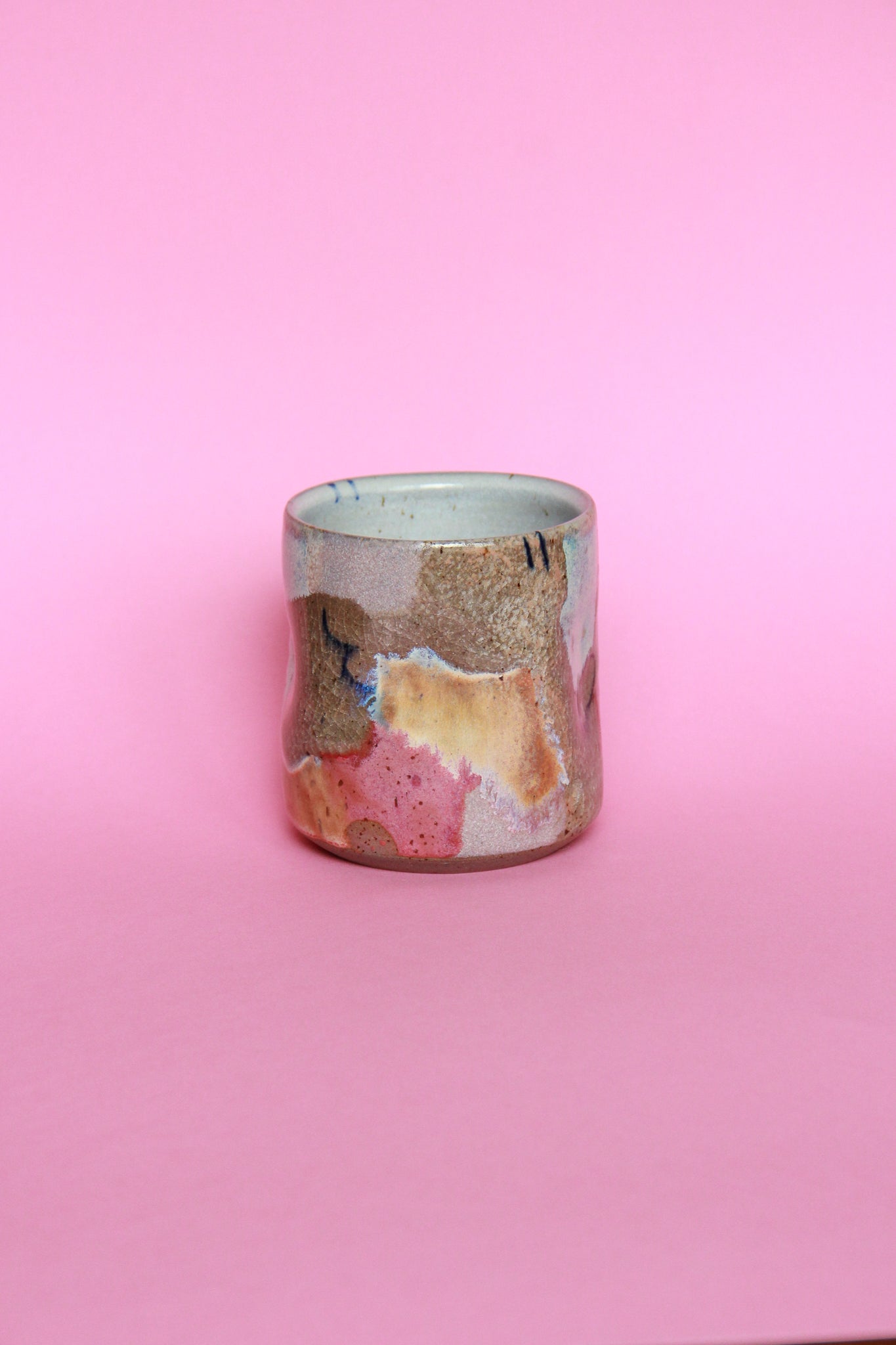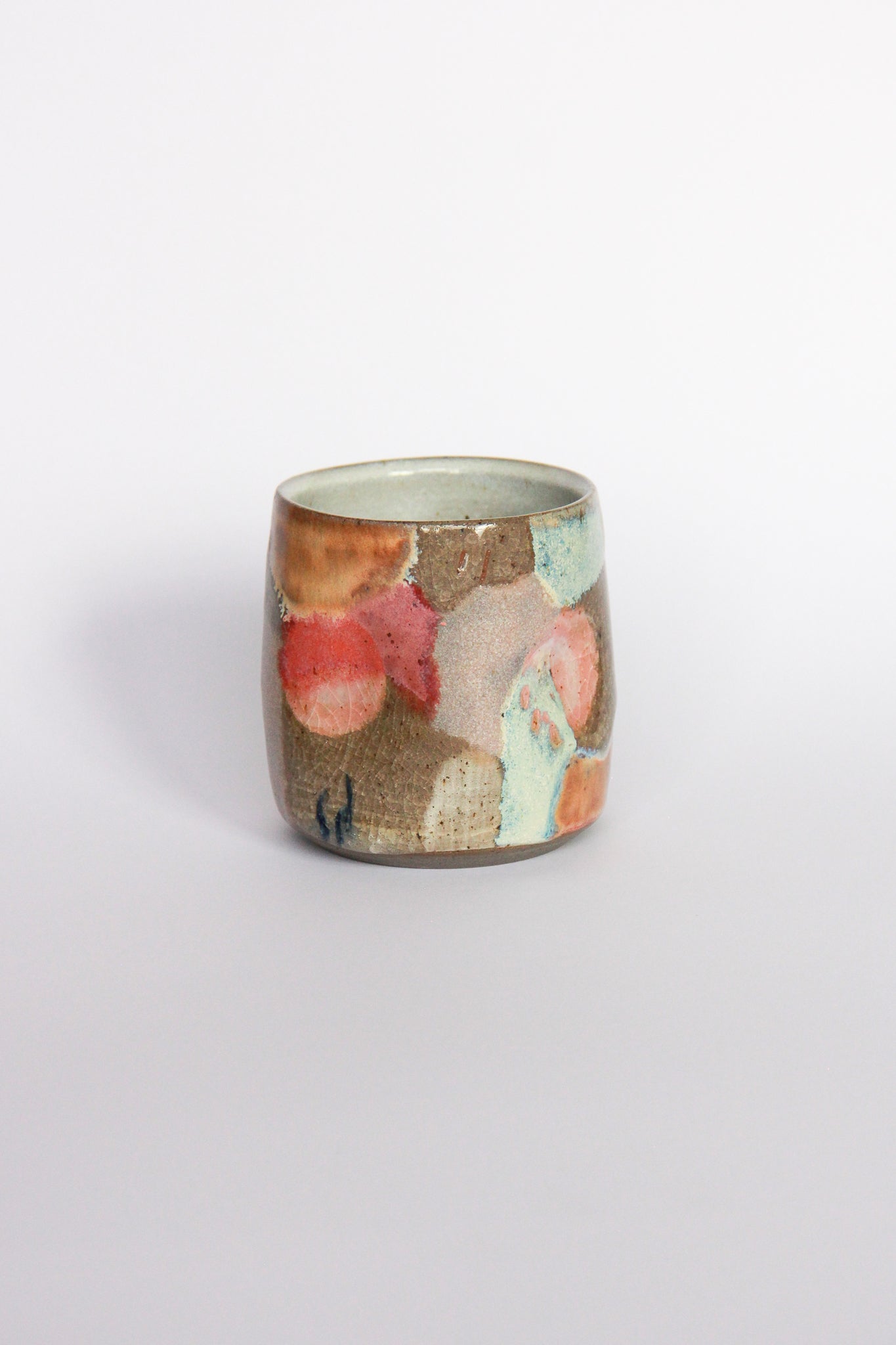 Each cup is wheel-thrown and gently altered by hand, creating subtle shifts in form that sit comfortably in the palm. Layered glazes move across the surface, allowing colour to pool, break and settle differently on every piece.