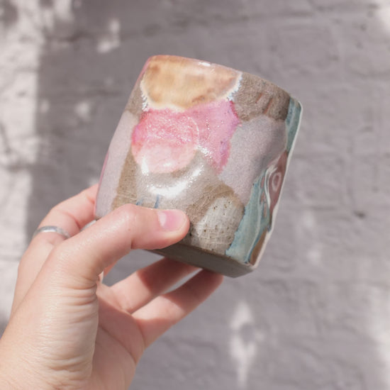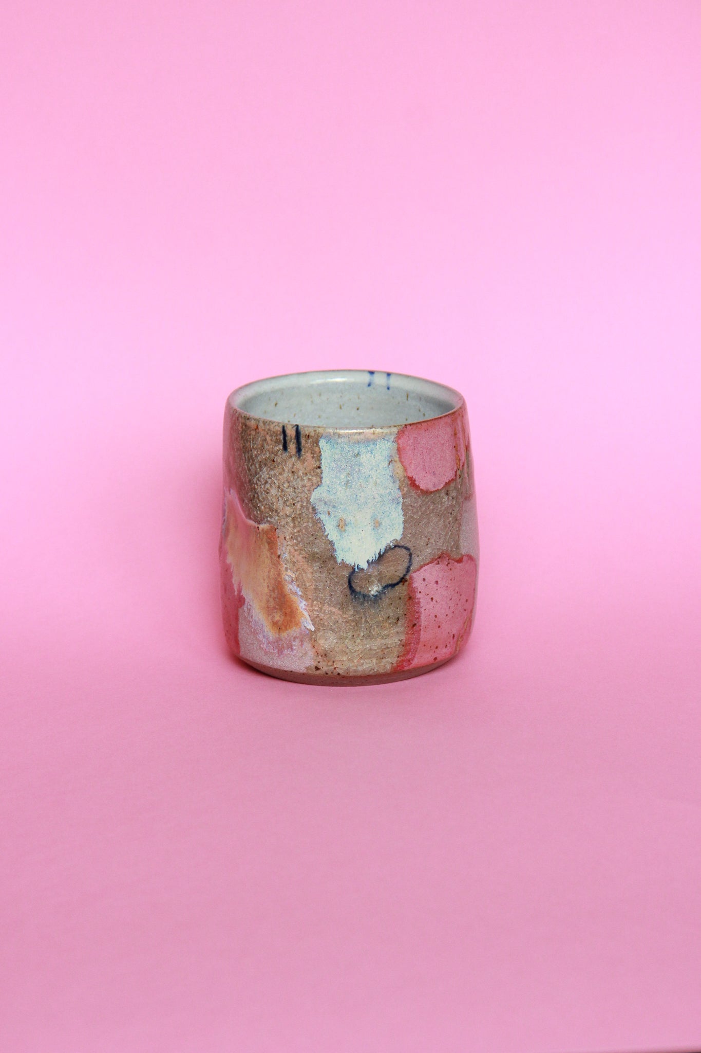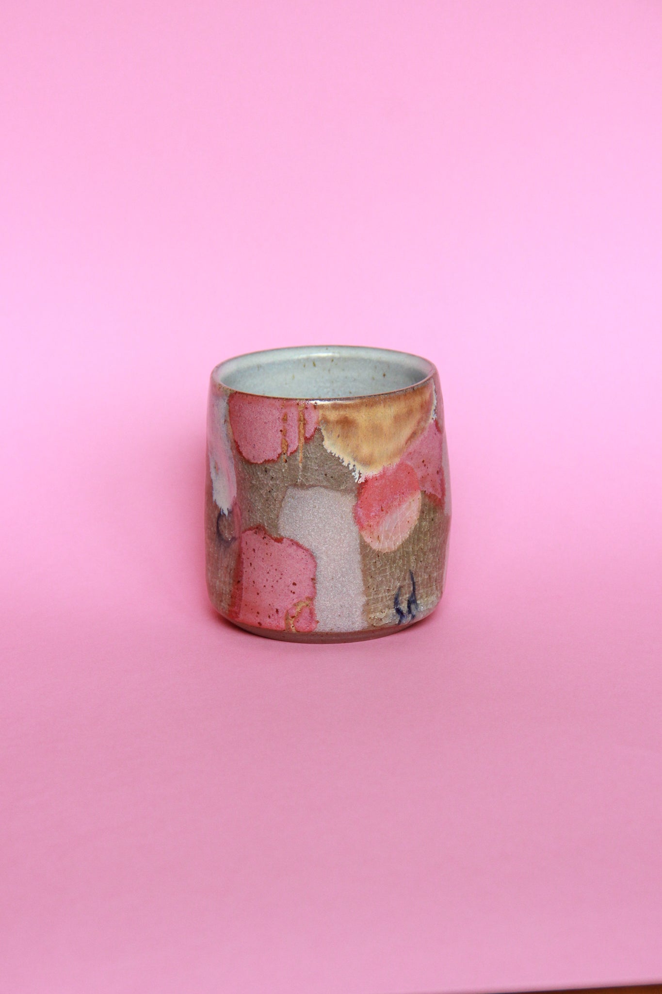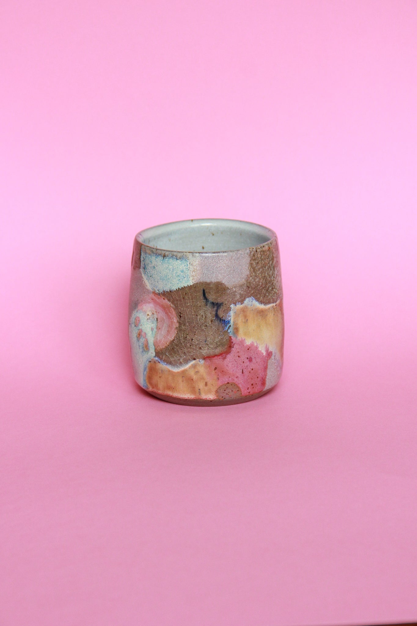 Each cup is wheel-thrown and gently altered by hand, creating subtle shifts in form that sit comfortably in the palm. Layered glazes move across the surface, allowing colour to pool, break and settle differently on every piece.