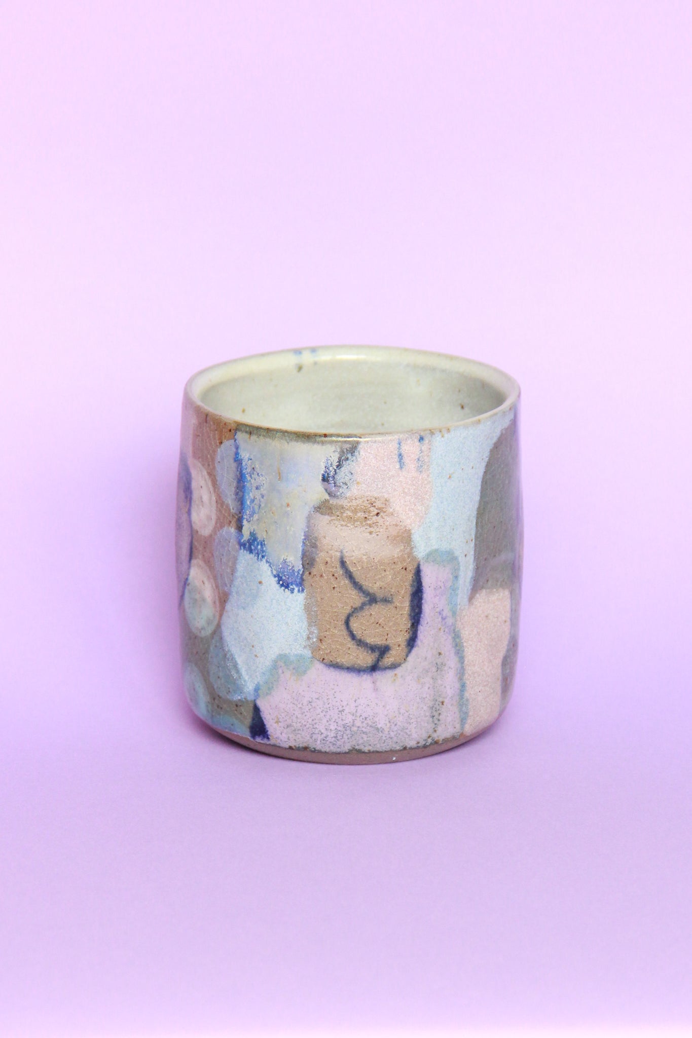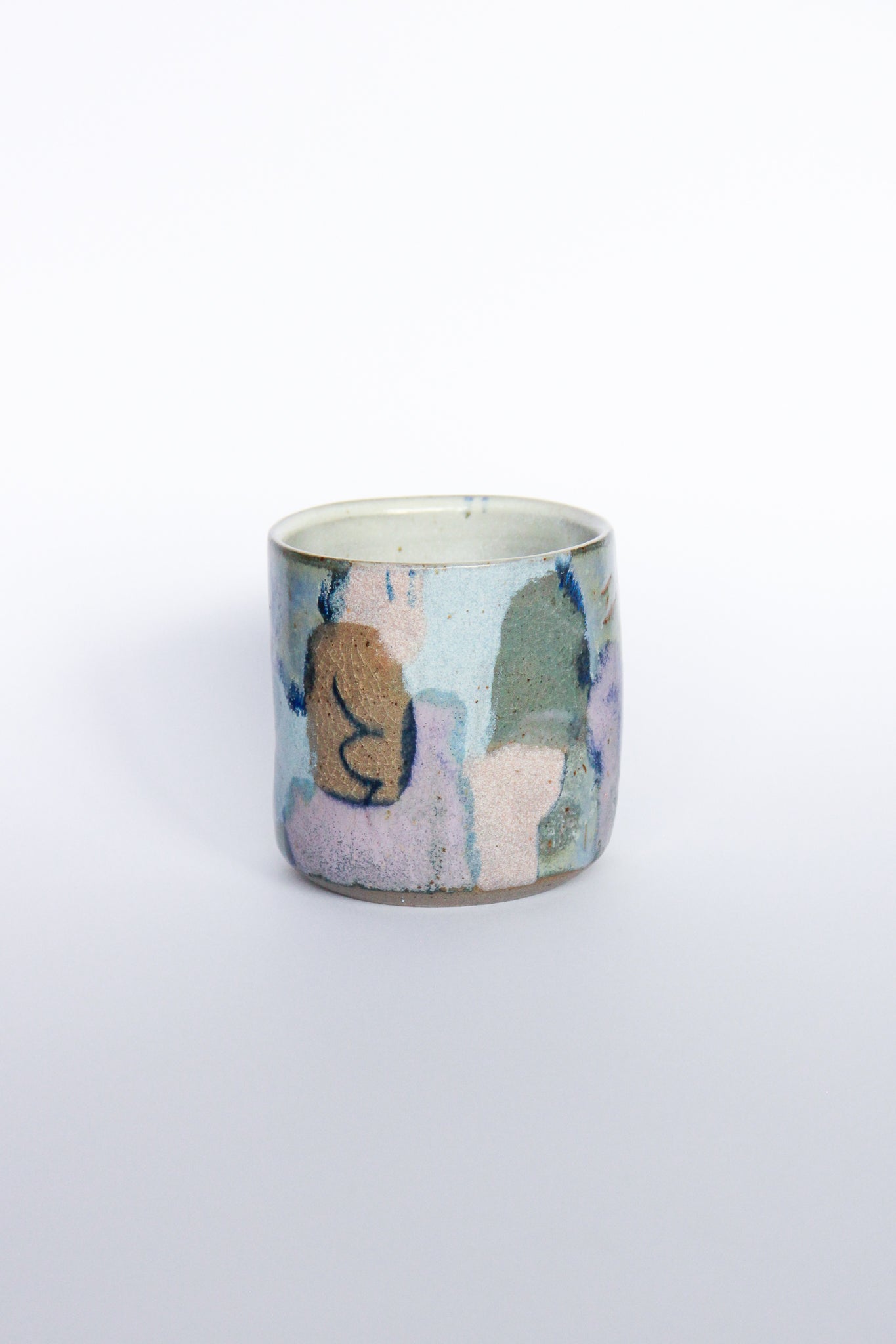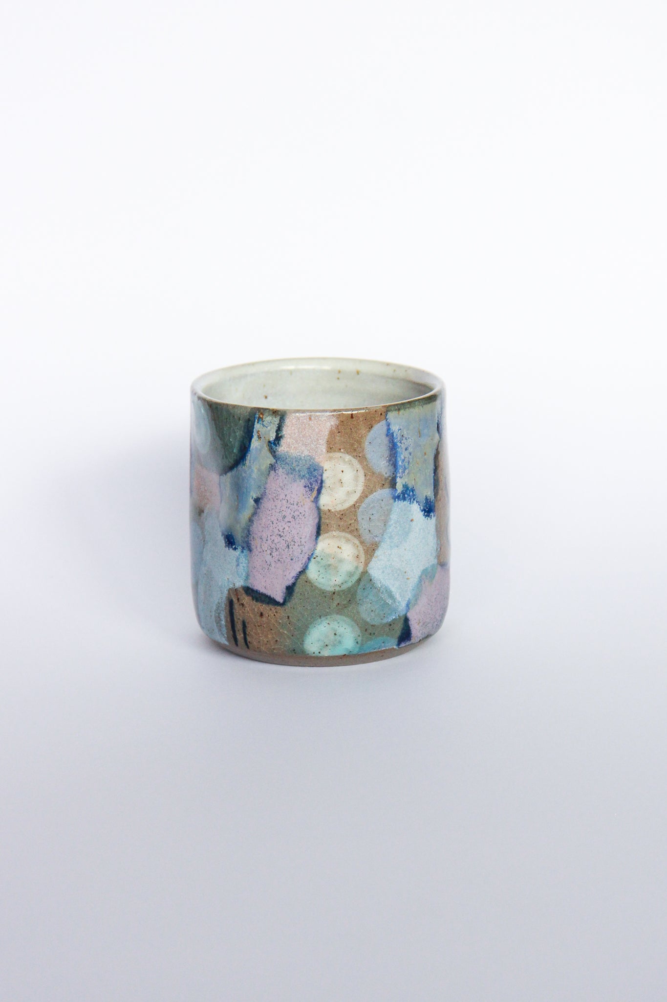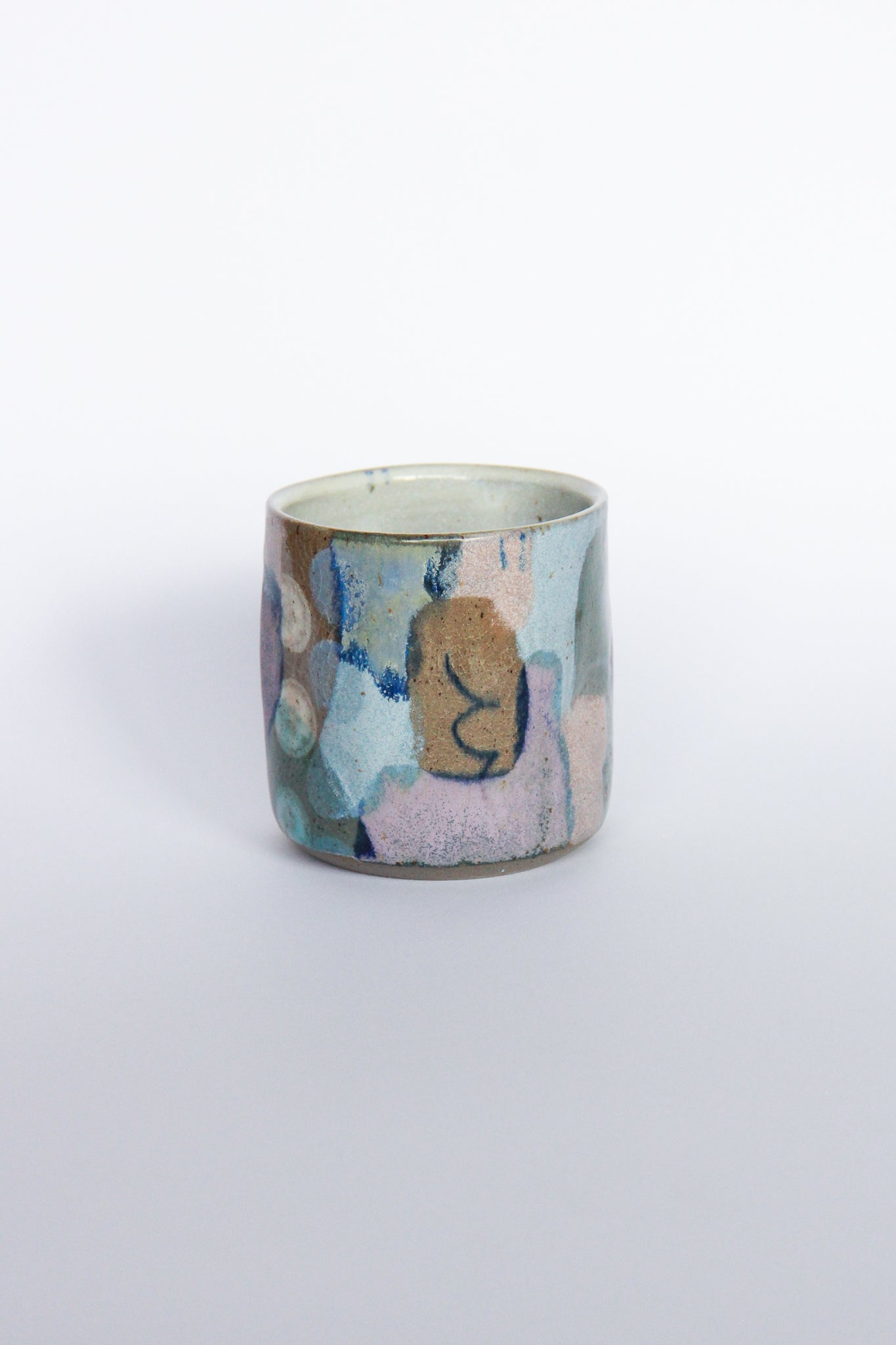 Each cup is wheel-thrown and gently altered by hand, creating subtle shifts in form that sit comfortably in the palm. Layered glazes move across the surface, allowing colour to pool, break and settle differently on every piece.